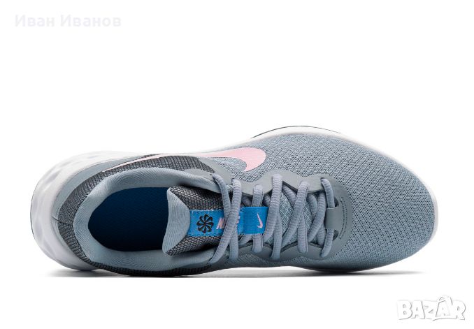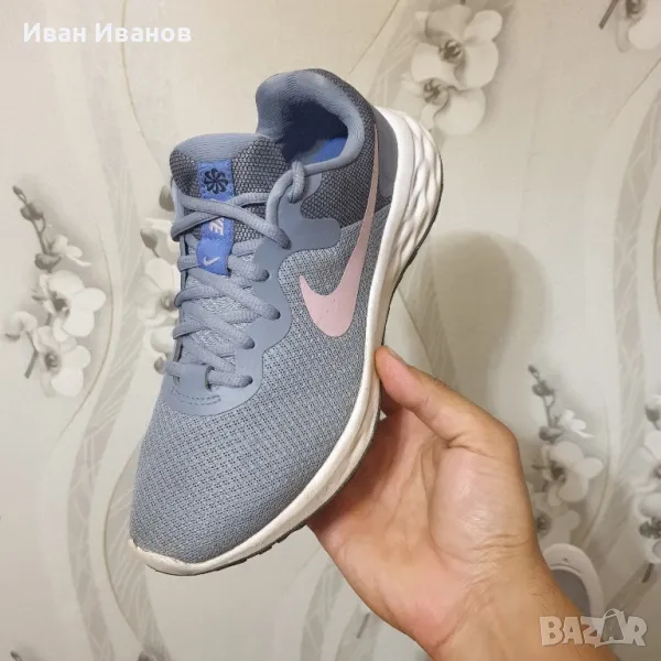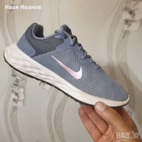 Nike Womens WMNS Revolution 6 . Малко използвани , с минимални следи , без забележки . Много леки , и удобни Страхотен модел за лятото . Направете революция в живота си с Nike Revolution 6 NN! Тази подобрена версия на модела ще Ви помогне да постигнете максимума в своята тренировка, като едновременно с това се грижите за природата.Nike Revolution 6 NN е част от сериятa Move to Zero. Тя е фокусирана върху грижата за природата, редуцирането на пластичните отпадъци и въглеродни емисии. Най-малко 20% от маратонките са изработени от рециклирани материали.Мекoто и тънко покритие е направено от висококачествена текстилна материя, която осигурява перфектно проветряване на крака. С Revolution 6 ще се чувствате страхотно дори и след продължително бягане.Допълнителните отвори позволяват да затягате връзките още по-прецизно и плътно.Маратонките са много леки, благодарение на специалната гума, от която е направена подметката. В същото време тя е обемна, за да абсорбира максимално напрежението от допира с повърхността.Стабилният грайфер създава отлично сцепление, което ще Ви изтласква напред с всяка крачка.Изработени с най-малко 20% тегловни рециклирани материали, старите материали намират ново начало. Сега можете да намерите своя. Задайте темпото в началото на своето бягащо пътуване с плюшеното усещане на Nike Revolution 6 Next Nature. Знаем, че комфортът е ключът към успешното бягане, затова се погрижихме стъпките ви да са омекотени и гъвкави за меко каране. Това е еволюция на любимите, с дишащ дизайн.Характеристика:Плюшена мрежа е поставена по протежение на яката за комфортно усещанеДопълнителните кожи навсякъде добавят издръжливостМеждинната подметка от пяна осигурява по-меко возене от Revolution 5Външната подметка има компютърно генериран дизайн, който създава естествен ефект на бутало, докато бягате, осигурявайки повече омекотяване и гъвкавостТе се комбинират за трайно сцеплениеТочките на допир на петата и езика създават естествено усещане, докато обувате и събувате обувките