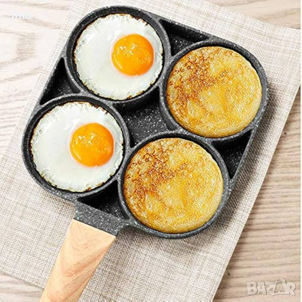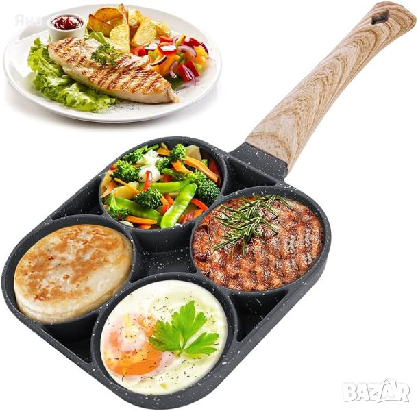 Тиган с незалепващо покритие с 4 отделения за приготвяне на яйца, палачинки, бургери и други