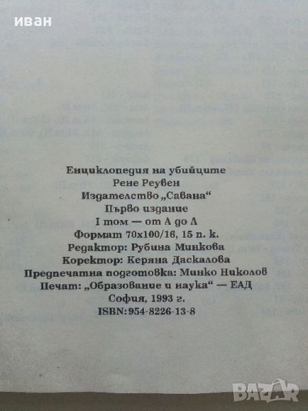 Енциклопедия на убийците том1 от А до Л - Рене Реувен - 1993г. → Обява 45565930