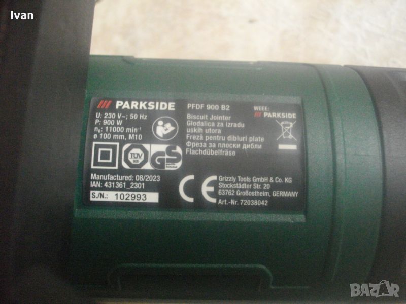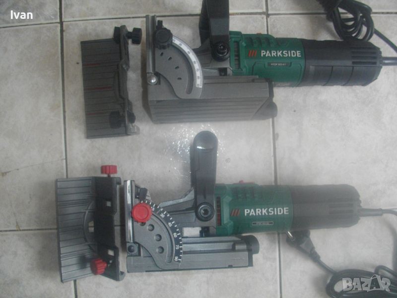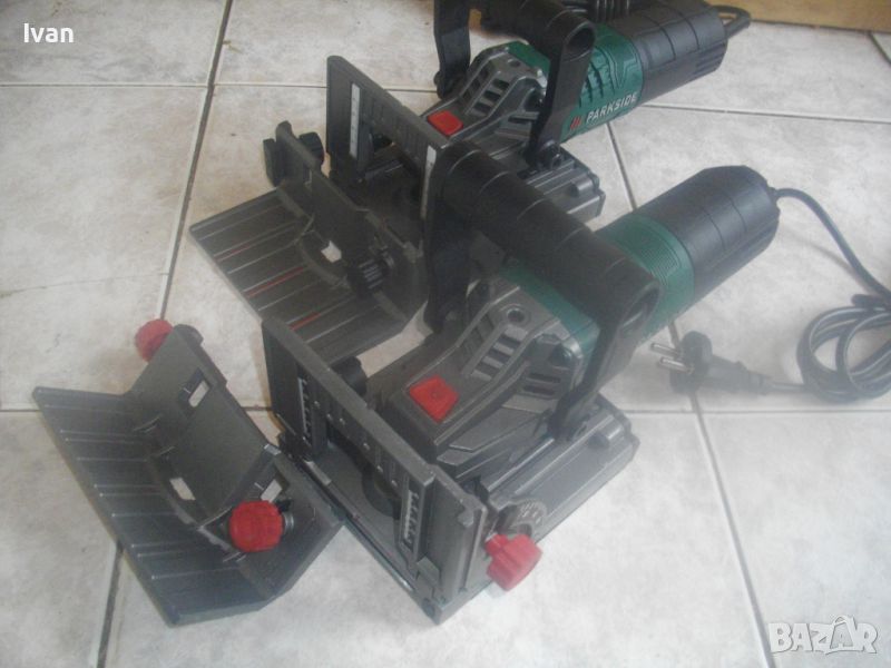Едната е модел Parkside PFDF 900 A - производство 06/2021, другата е модел PFDF 900 B2 - производство 08/2023 г. И двете са 900 ватови, със скорост 11 000 об/мин. Наклон 0-90 градуса. Като нови са, тредно различими от нови, дори бих казал напълно нови. В добро работно техническо състояние. И двете са с маркирано производство в Германия, не са китайското производство на марката. И двете са с втори допълнителен водач на главата плот. Дръжка горна масивна и широка удобна. Външен конектор на отпадъчна прах за торба за прах. Тегло на машина - 2,2 -2,5 кг. Маркиран произовдител на фабричния стикер - GRIZZLY Tools GmbH Germany. Фрезов диск поставен на сяка оригинален нов/като нов/ - размер универсален ф 100 мм.