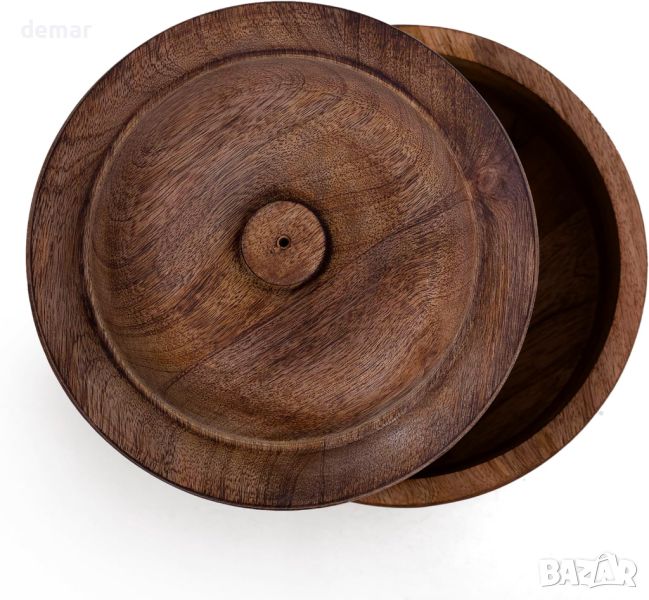 Тази кръгъл гювеч с диаметър 22 см и височина 11 см е идеален за поддържане на топли мексикански тортили или индийски роти. Той разполага с вентилиран капак за поддържане на свежестта и предотвратяване на натрупването на влага, а неговата гладка, непореста повърхност от мангово дърво гарантира лесно почистване. Гъвкав и стилен, той служи и като елегантен контейнер за палачинки, вафли и други продукти за закуска, като се съчетава безпроблемно с всяка сервировка на масата. Изработено по устойчив начин в Северна Индия, всяко парче е направено от законно добито мангово дърво, което подкрепя както околната среда, така и занаятчийските общности. Отличен избор за подарък за сватби, домакинство и други специални поводи.