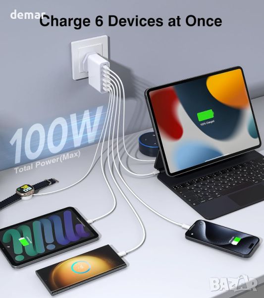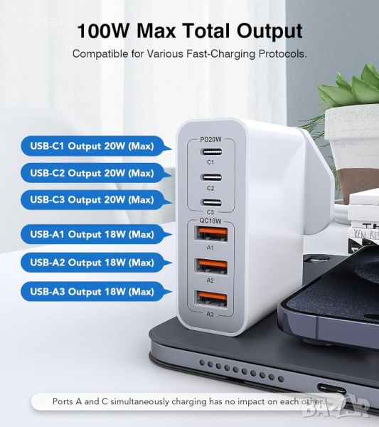 100 W 6-портов USB C щепсел - бързо зарядно устройство