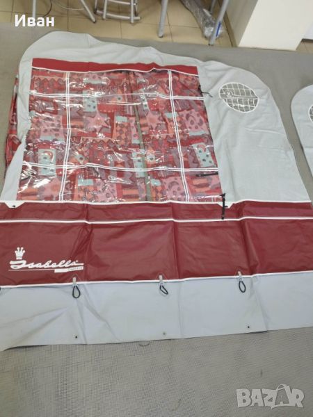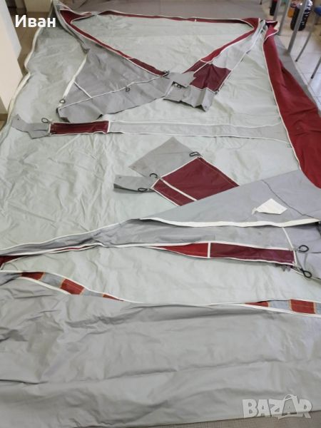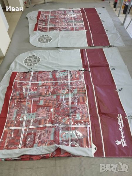 Забележка: Миниатюрна дупчица която е отремонтирана. Мястото не е в проблемна зона. Пада се отзад на форселта по ръкава който слиза надолу по караваната.Вижда се на снимката. Забележката е абсолютно козметична и никога няма да създава проблем. Всичко останало е перфектно. Здрава материя на страниците ,здрав винилов покрив. Перфектни ципове и кристално светли прозорци.