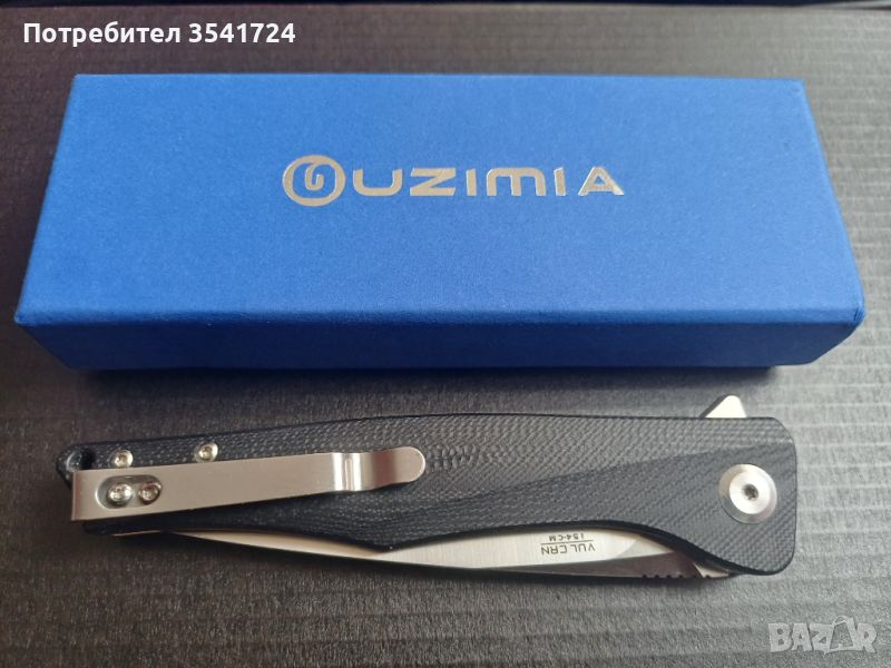 Пускам за продаване чисто нов нож Uzimia VUL CRN от американската стомана - 154CM, дръжка от G10 и лагери за комфортно отваряне. Острието е Full Flat, тънко сведено и много остро. Закалено е на оптималната твърдост за стомана 154CM - 59HRC.
