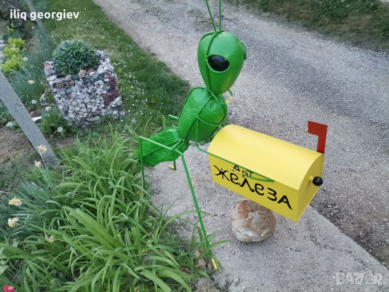 Изработва се по поръчка от снимките е продаден много голям и тежък е ръчна изработка от камъни и желязо надписа на кутията може да се смени с друг. Също така и кутията може да се смени с нещо друго по ваш избор например пепелник, бутилка цигулка, пистолет идр. Цената не се коментира.