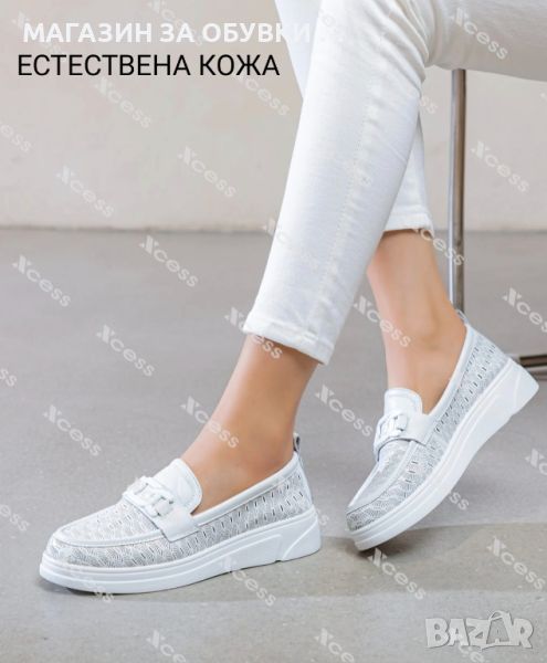 Дамски мокасини от естествена кожа на дългогодишната марка "ЕКСЕС". Изключително комфортни от мека естествена кожа. Подходящи за топлите дни. Дължина на стелка - № 36 - 23,5см / 37 - 24см / 38 - 24,5см / 39 - 25см / 40 - 25,5см / 41 - 26см. Налични и в други цветове - бежеви и черни. Изпращаме с преглед и тест преди заплащане! Заповядайте и във физическият ни магазин в гр.Трявна ул.Ангел Кънчев 22 - ЦЕНТЪР!