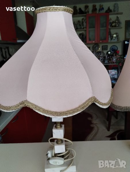 Стари нощни лампи от времето на соца с абажур от плат и мраморна основа с размери 58 и 55 см. Моля, разгледайте и другите ми обяви,има много красиви неща!