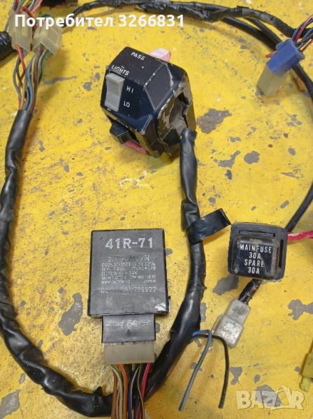 оригинална японска инсталация/основния сноп/ за FZR 1000 Deltabox в перфектно техническо състояние, става и за другите кубатури, оригинално перфектно работещо реле за мигачи, лявата конзола за командите на кормилото с лека пукнатина но също работеща идеално, перфектно състояние на портовете за бушоните, както се вижда от снимките, няма стопени жици или други подобни простотии