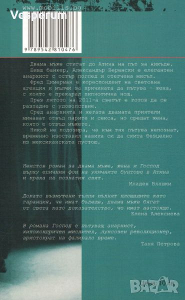 Неистов роман за двама мъже, жена и Господ върху епичния фон на уличните бунтове в Атина и краха на познатия свят.