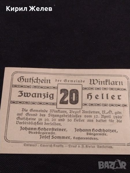 Банкнота НОТГЕЛД 20 хелер 1920г. Австрия перфектно състояние за КОЛЕКЦИОНЕРИ 45076 → Обява 45572629