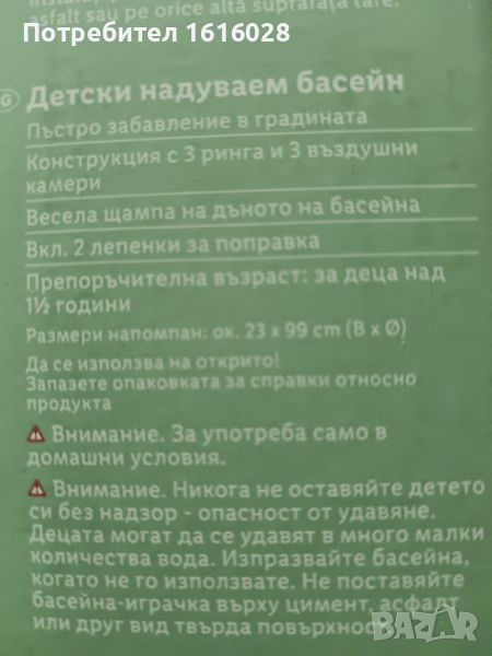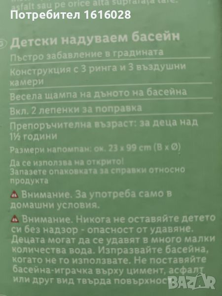 Размери на напомпан басейн около 23 см./ 99 см.