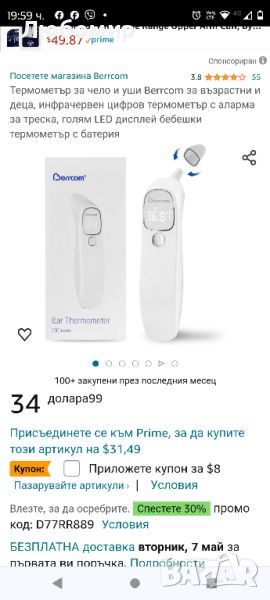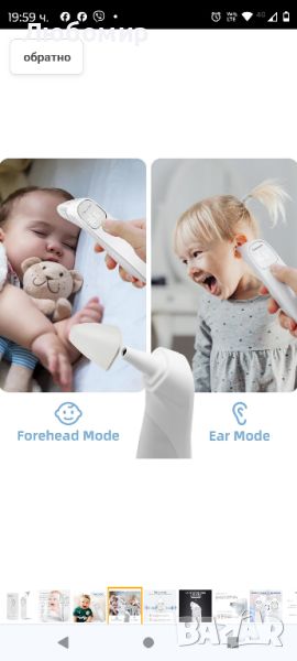 Термометър за чело и уши Berrcom за възрастни и деца, инфрачервен цифров термометър