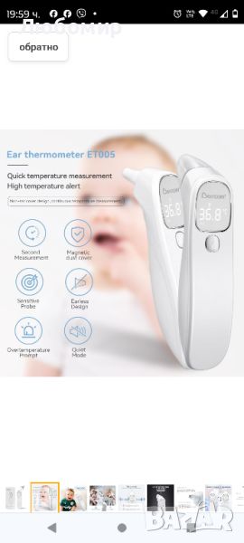 термометър: Температурният термометър 2 в 1 автоматично превключва между режим на челото и ушите чрез капачката. Получете бързи резултати за 1 секунда, като премахнете капака на магнитната сонда, за да получите най-точната температура на тъпанчето. Поддържа се превключване между ºC и ºF, автоматично изключване при неизползване за пестене на енергия.Прецизен термометър за температура: нашият инфрачервен термометър дава бързи и точни резултати! Със своя усъвършенстван високочувствителен инфрачервен температурен сензор. Високопрецизна сонда и чип от следващо поколение са клинично тествани. Ако се установи висока температура, стойността на термометъра ще мига, придружена от 3 кратки двойни звукови сигнала.Интелигентен дизайн: Нашият цифров термометър за уши и чело може лесно да бъде заглушен, за да избегнете събуждането на вашето спящо бебе. Благодарение на своя ярък и голям LED екран, резултатите ще бъдат ясно показани дори на тъмно! Освен това този термометър може също да измерва температурата на предмети като мляко, храна, вода за баня и стайна температура