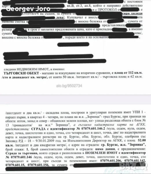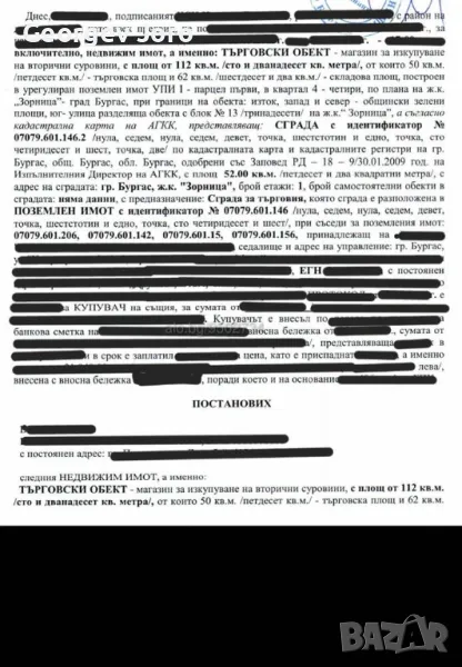Сграда за търговия с площ по нотариален акт , 52 кв.м и складово помещение, 60 кв.м.