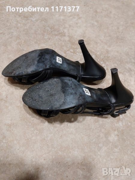 естествена кожа. Цвят черен, размер 37, височина на тока 8 см. Носени са броени пъти, само по поводи. Цена: 10 ЕUR.