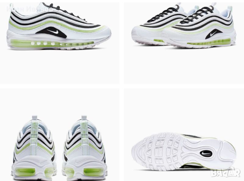 Nike Air Max 97 'Summit White Volt' 921733-105Дамските маратонки Nike Air Max 97 запазват същите дизайнерски детайли, които направиха оригиналния модел емблематична маратонка и го направиха известен: вълнообразни линии, отразяваща лента и омекотяване Max Air по цялата дължина.Характеристики:Max Air с пълна дължина за леко омекотяване.Иновативна система за връзки за персонализирано прилягане.Гумена подметка с модифициран вафлен модел за сцепление и издръжливост.Нископрофилна яка за комфорт около глезена.Плат/синтетичен материал или синтетичен материал/кожа/плат, в зависимост от цвета