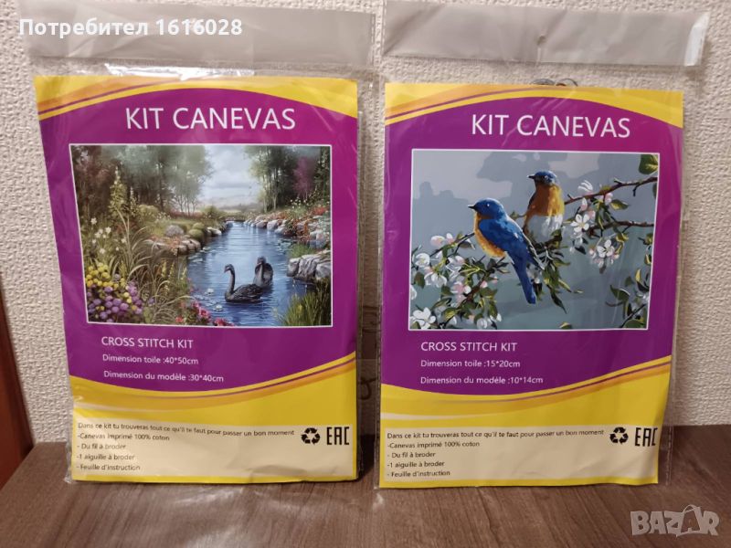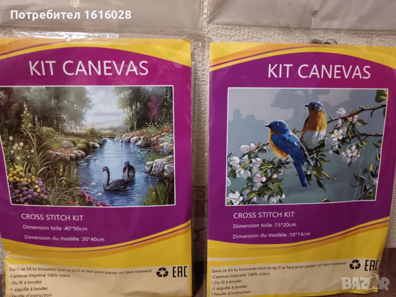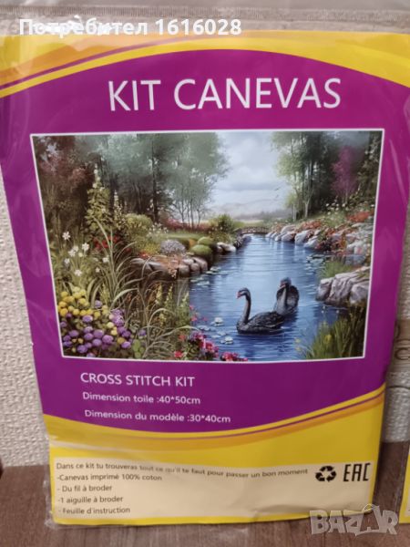 Комплекти с материали за бродиране на гоблен.Пейзажи с лебеди и птички.