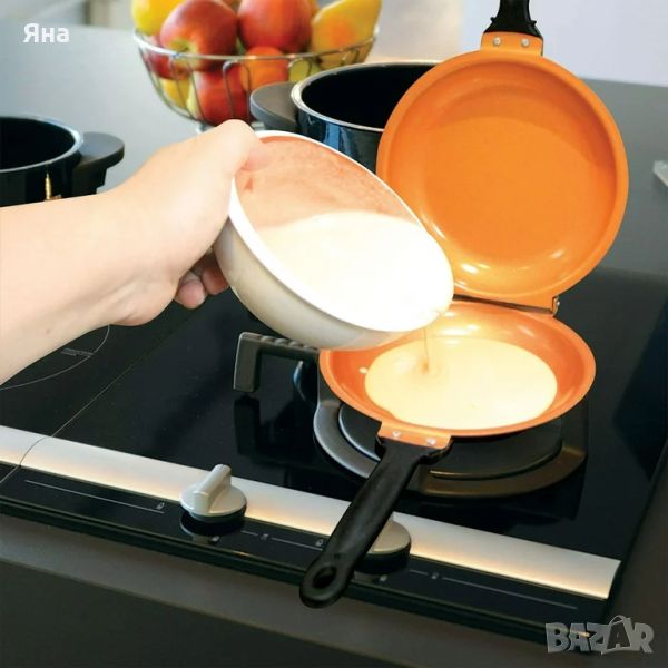 Двоен незалепващ тиган за палачинки или омлети, тигани с незалепващо покритие → Обява 45574316