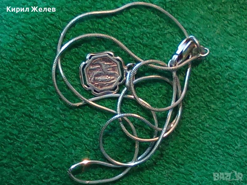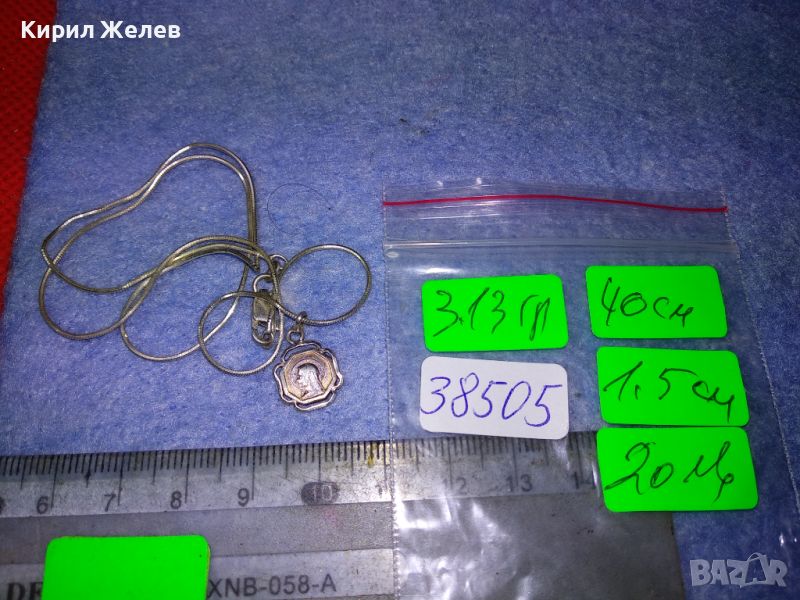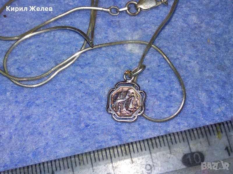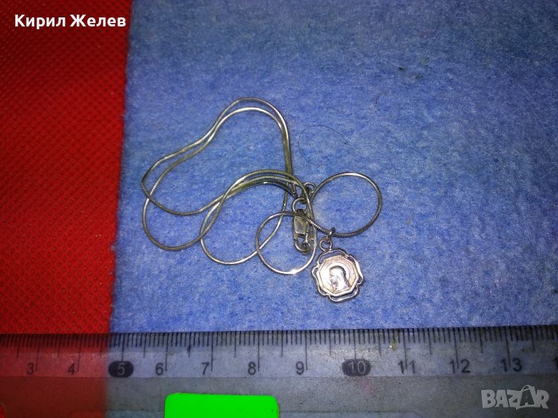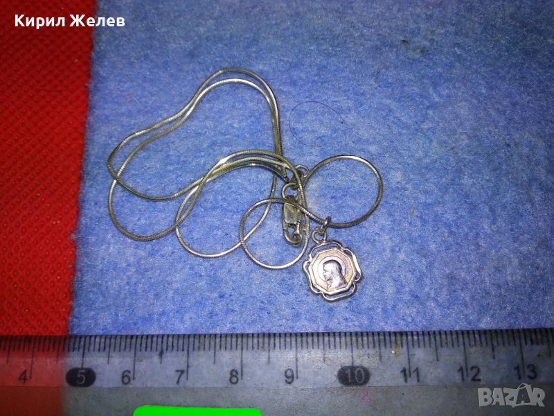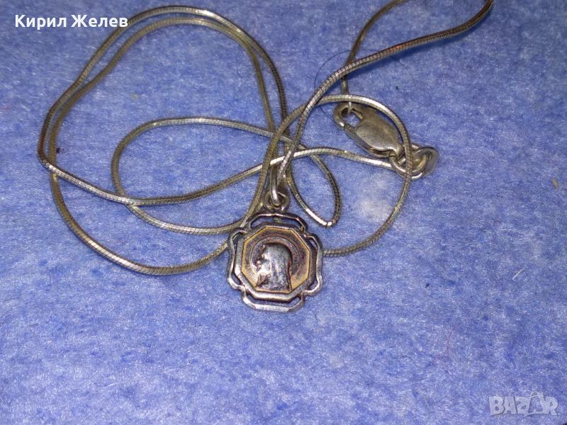 ФИНА СРЕБЪРНА ДВУСТРАННА КАТОЛИЧЕСКА ИКОНКА със СРЕБЪРНО СИНДЖИРЧЕ СРЕБРО 925 МАЙСТОРСКИ 38505