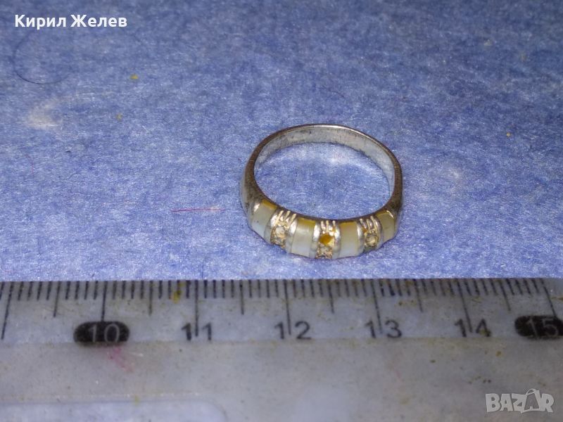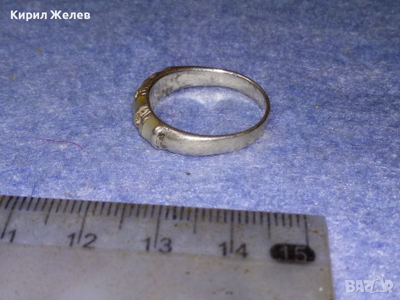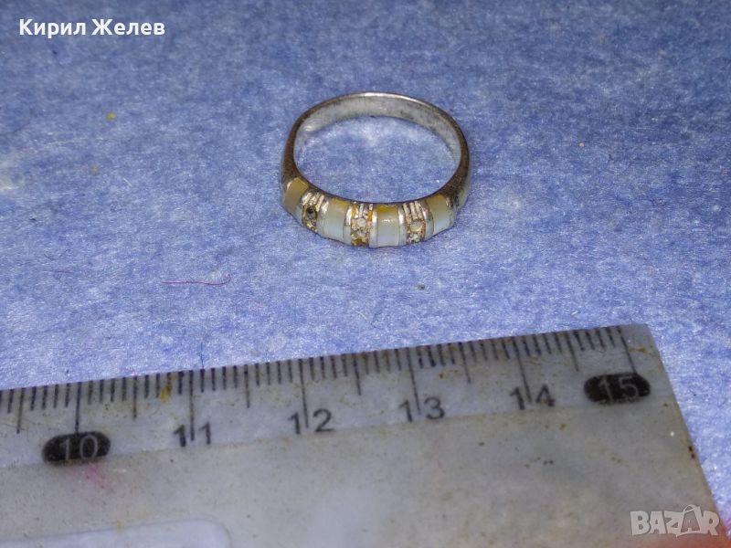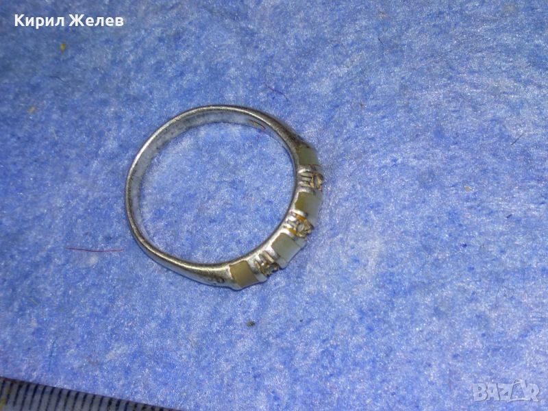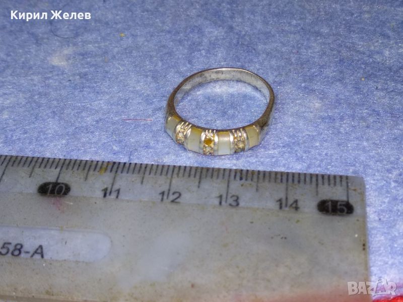 Стар СКЪПОЦЕНЕН СРЕБЪРЕН ПРЪСТЕН СРЕБРО 925 АНГЛИЯ МАРКАЗИТ и МЛЕЧЕН БЯЛ АХАТ РЪЧНА ИЗРАБОТКА 44255