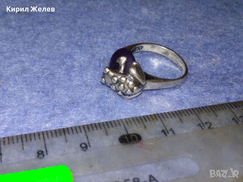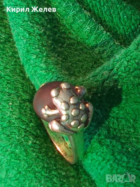 СТАР ФИГУРАЛЕН СРЕБЪРЕН ПРЪСТЕН ЖАБКА СРЕБРО 925 с ШЛИФОВАН ОПУШЕН ПЛАНИНСКИ КРИСТАЛ КВАРЦ 44256