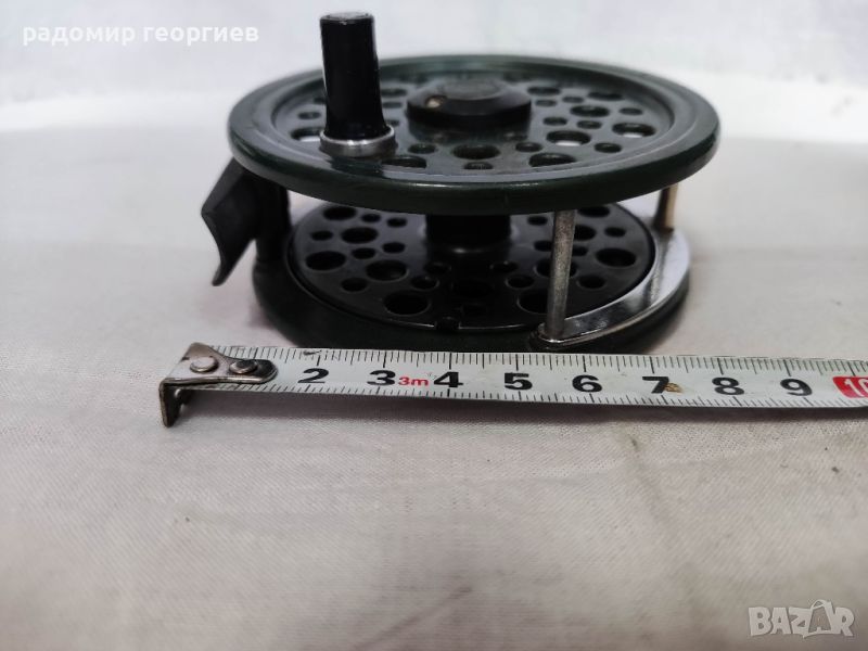 мухарска макара с диаметър 9 см ,тежи 190 гр. метална шпулата и корпус.
