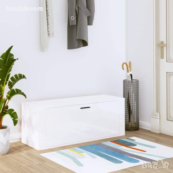 Шкаф за обувки, бял гланц, 100x35x38 см, инженерно дърво , снимка 1 - Шкафове - 45581097 Шкаф за обувки, бял гланц, 100x35x38 см, инженерно дърво , снимка 2 - Шкафове - 45581097 1/2