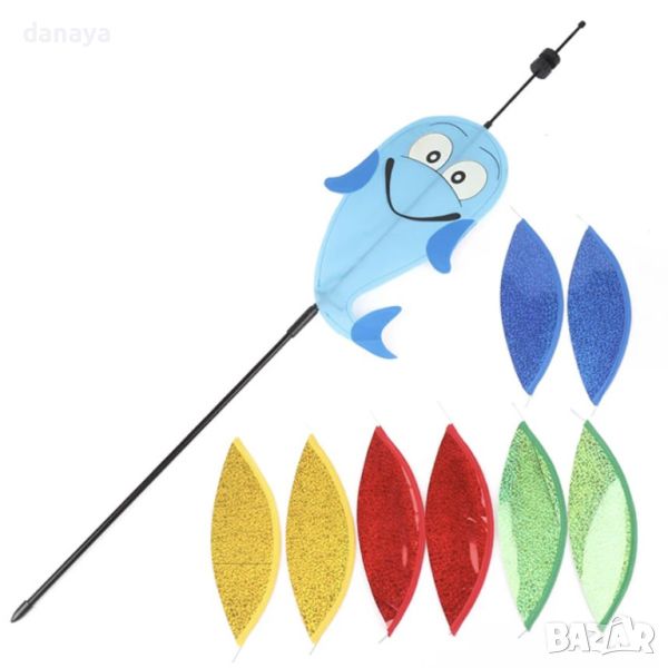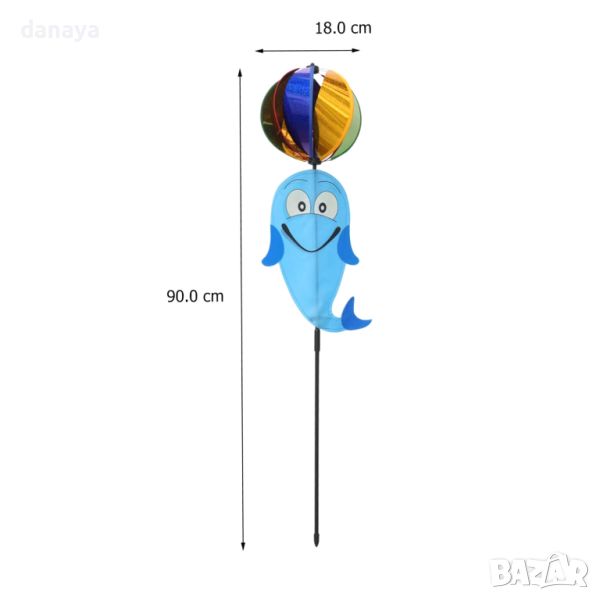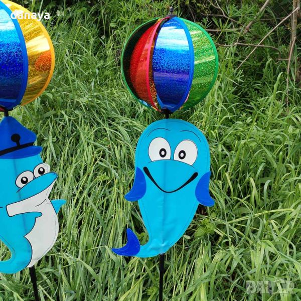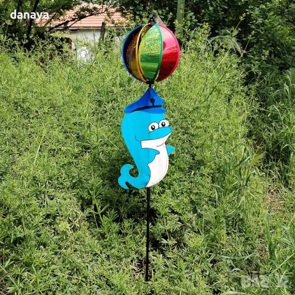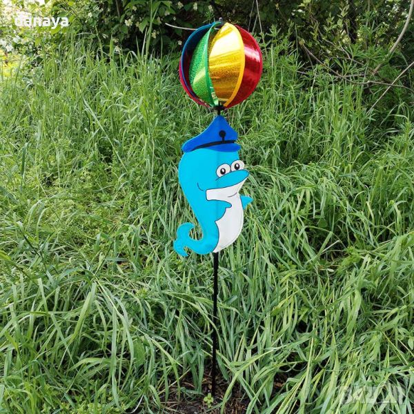 Супер яка, весела и ярка ветровъртележка с форма на делфин и въртяща се блестяща топка. Въртележката е идеална декорация за градини, балкони, може да се поставят върху кашпи и саксии. Тези въртележки са създадени да носят настроение и цвят, където и да ги поставиш.
