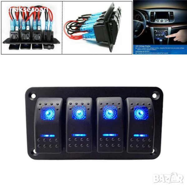 Панел с 4 бутона предназначени за: лед баровe,фарове,ОФРОУД джипове, автомобили, камиони, лодки,яхти, каравани и т.н.