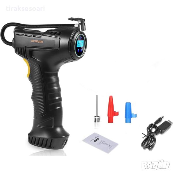 Висококачествен, презареждаем, преносим компресор с LED дисплей за помпене на гуми, топки балони и др.