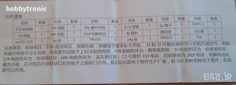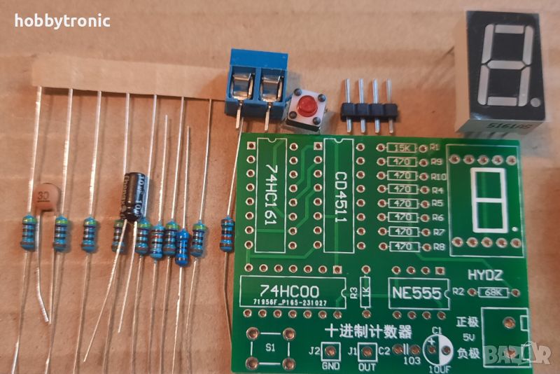 Продавам кит за сглобяване на генератор на импулси с десетичен брояч, дешифратор и LED 7 сегментен индикатор.