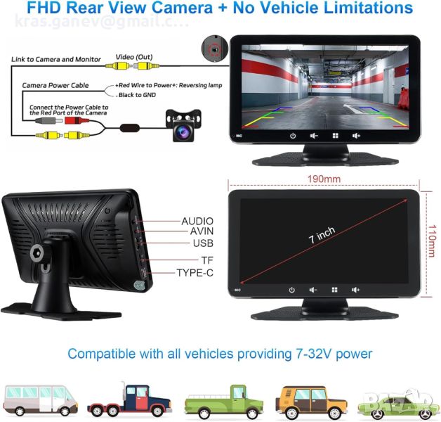 Mirror Link и камера за заден ход: Преносимият carplay дисплей е оборудван с AHD HD камера за заден ход, за да осигури ясна картина при заден ход, която може да осигури функция за помощ при паркиране, за да помогне на шофьорите да паркират безопасно и точно. Mirror Link синхронизира картината на екрана на вашия телефон със 7-инчовия HD сензорен екран на преносимото радио carplay чрез USB кабел, за да се насладите на по-големи и по-ясни изображения.