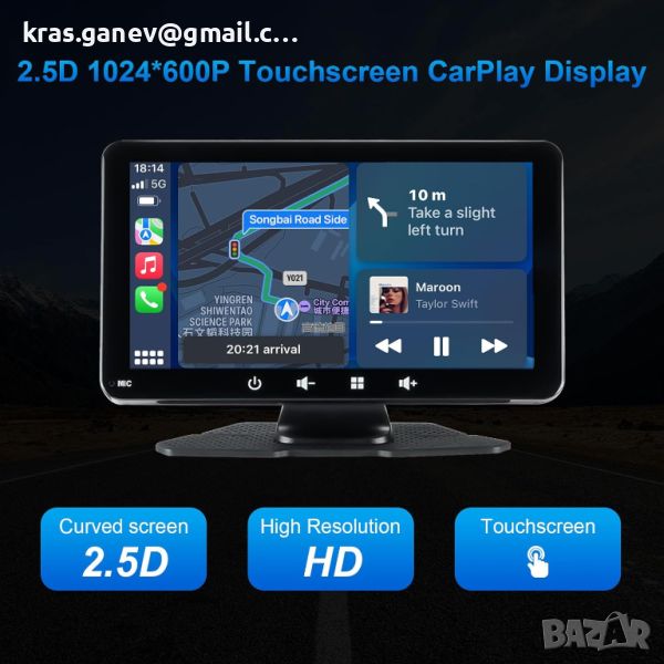 Безжичен/кабелен CarPlay: Безжичният Apple CarPlay + Android Auto се свързва безпроблемно с вашия смартфон и предоставя функции и приложения на 7-инчовия сензорен CarPlay дисплей. Обаждайте се, изпращайте съобщения, навигирайте и слушайте музика. Независимо от вашия модел превозно средство, можете да се насладите на по-безопасно шофиране с тази модерна технология.