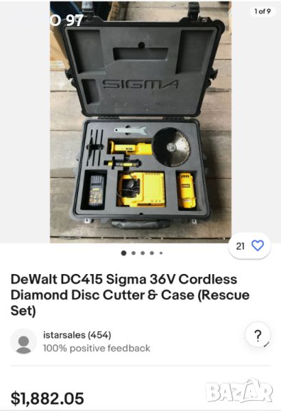 ъглошлайф на Девалт в много-добро визуално състояние и работи отлично, комплекта е на 100% оригинален и внос от Франция. Обявената цена включва машината, една литиево-йонна батерия 36V, зарядно устройство и куфар за транспортиране.