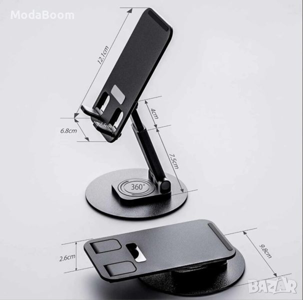 Поставка за телефон или таблет, 360 градусово въртене, за маса или бюро, Алуминий → Обява 45591518