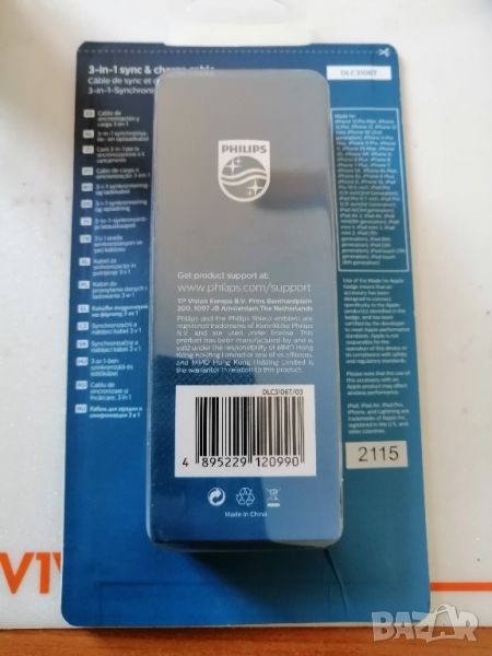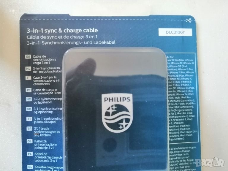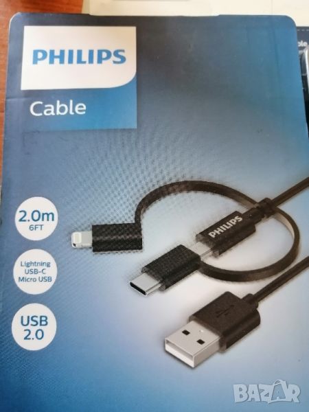 НОВ Кабел 3 в 1: Lightning, USB-C, Micro USBПодходящ за зареждане и пренос на данни за всякакви смартфони с Micro USB, USB-C, iPhone, iPad.PHILIPS DLC3106T