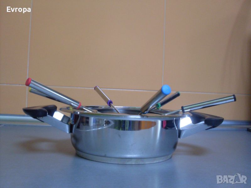 Тенджера за фондю, закупена от Германия в добро състояние. Не е нова , но е "вечна". Може да се ползва и само като тенджера..... Договаряне..... Предпочитам лично предаване, по куриер- първо изпращате част от договорената сума... Изпращам с опция "преглед и тест" и 10% отстъпка от куриерската услуга...