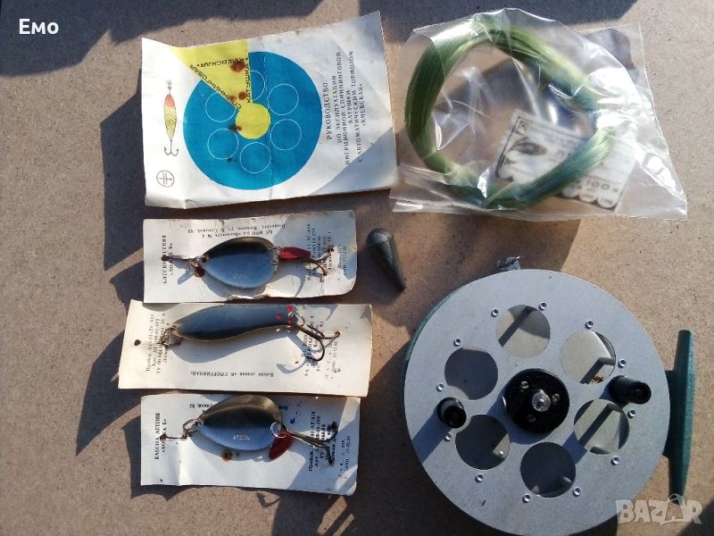 Предлагам много добре запазени и реално изобщо невлезли в монтаж и употреба рибарски принадлежности - 2 бр. Киевски к-кти "Катушка", от завод "Сатурн". Съдържат макари с корда, плувки, кукички и др. с книжка и в кутийка.