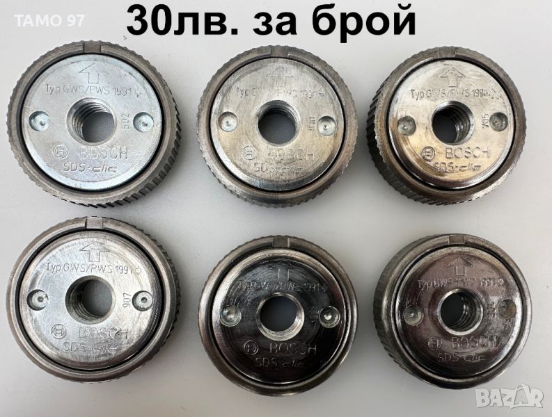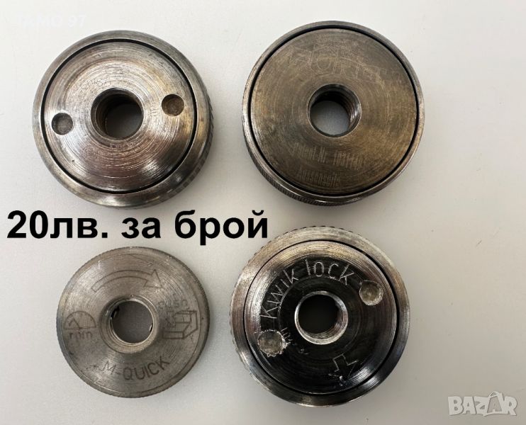 Продавам бързозатягащи гайки за ъглошлайф от изброените марки Bosch, Forch, Metabo, Hilti, Milwaukee, Dewalt всички са читави и здрави. Цените са написани на снимките кой модел на каква цена е и са крайни цените няма значение колко бройки ще се купят, единствено ако се купят всичките заедно общо: 240лв. Пращаме с опция преглед и тест с куриерска фирма еконт може и лично предаване за гр. Шумен.