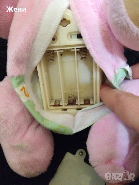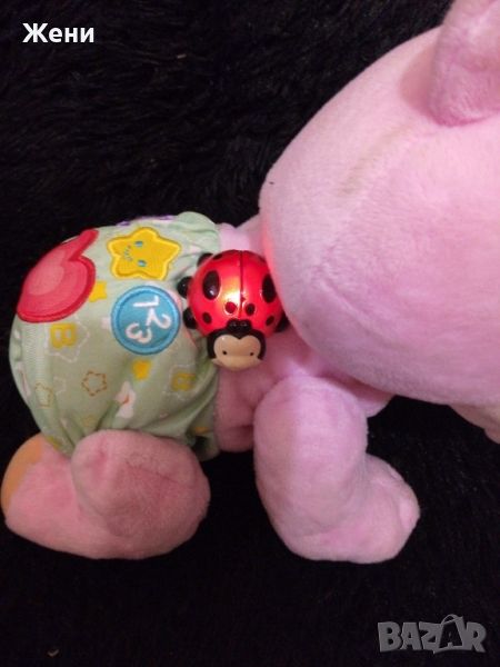 Играчката стимулира бебето да пълзи, в отлично състояние е, на марката VTECH. Единствената забележка е, че има ръжда по пружините за батериите, но работи чудесно и капакът го обезопасява. Имам и друго розово и кафеви, без ръжда. При интерес ще направя клипче.