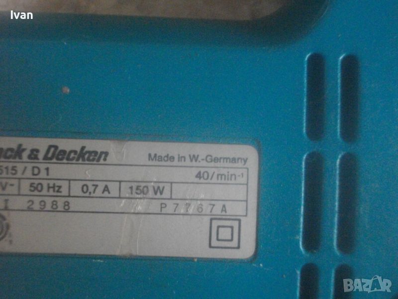 ОПИСАНИЕ на синя ел. ножица за рязане ламарина/плат/табак - Black Decker - W.Germany - цена 159 лв. Почти нова/като нова/трудно различима от нова - електрическа ножица, оригинално производство на марката Блек Декер от преди години в Зап.Германия.