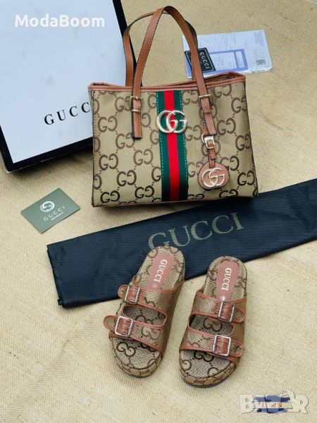✨🖤Gucci стилни дамски комплекти чехли и чанти🖤✨ → Обява 45602460