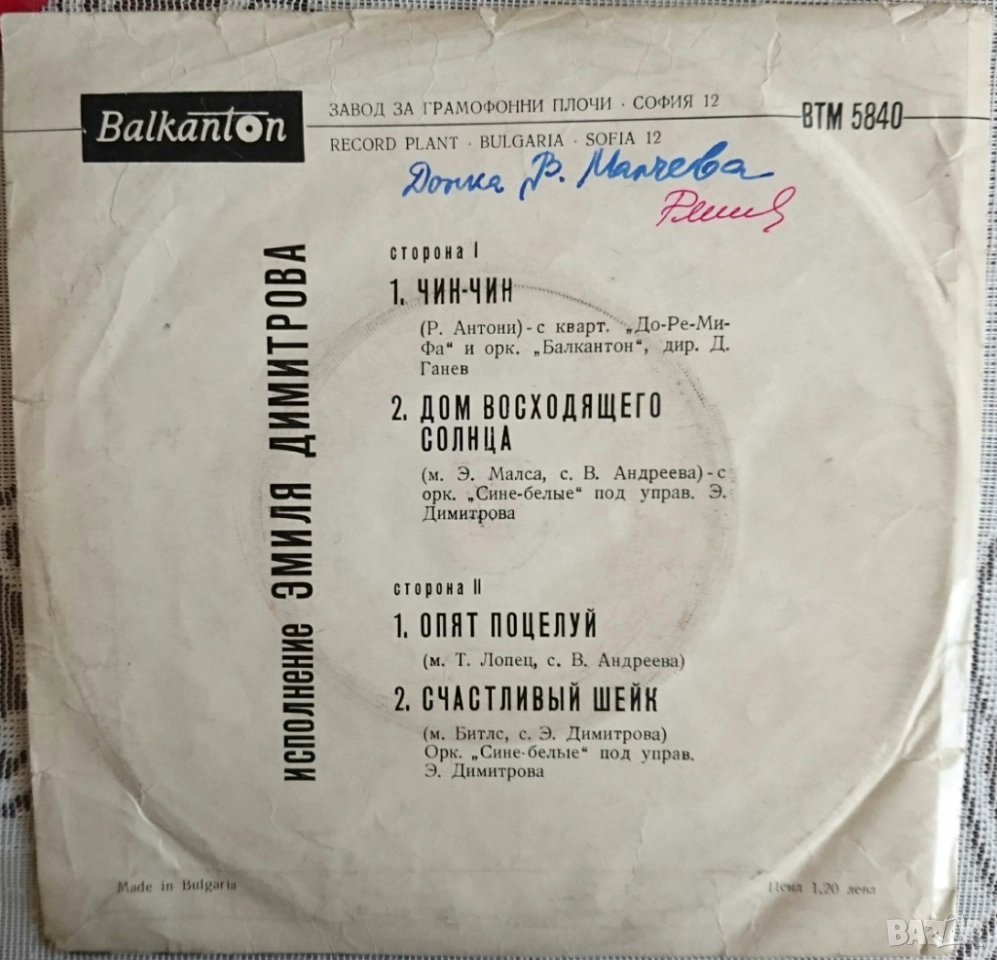 Грамофонни плочи Балкантон 7" сингли цени в обявата