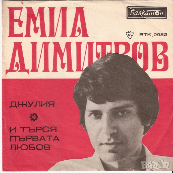 Емил Димитров – Джулия / И търся първата любов 7" сингъл ВТК 2982, в много добро състояние, с оригинална обложка. Цена 4.00 лева.