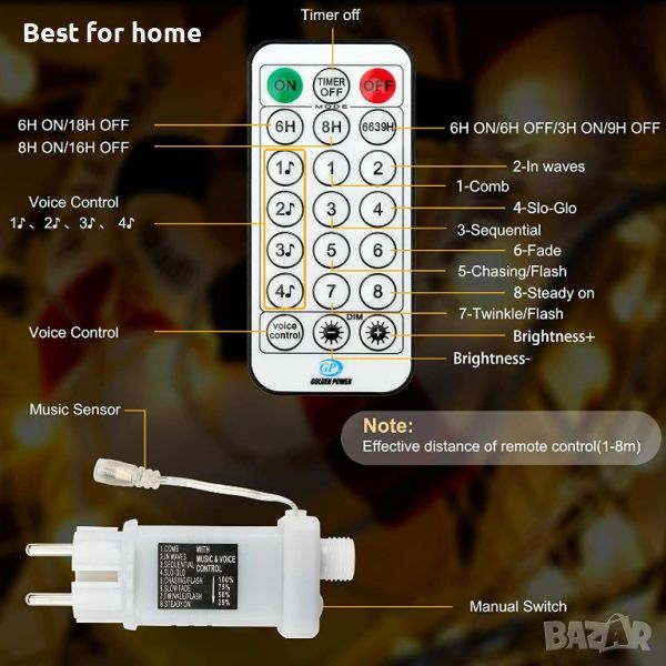 LED осветление от 100 крушки дължина 15м с дистанционно и инструкция.Дистанционното има няколко варианта на светене от сила до комбинации.