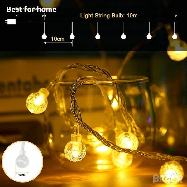 Декоративни светлини 100 Led Isuda Led топка с крушка 15 метра Дистанционни струнни светлини Атмосферни светлини 50 Led кристални топки