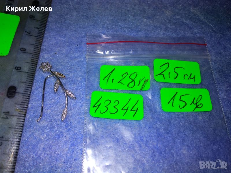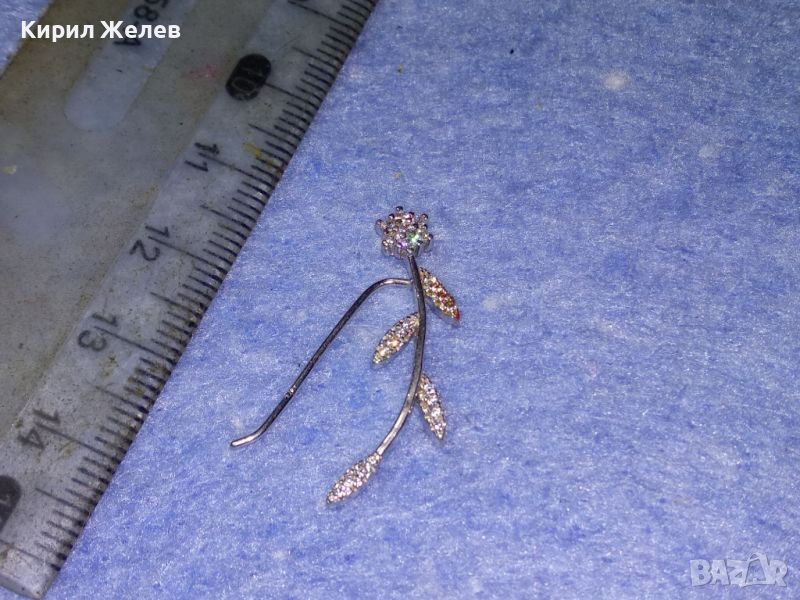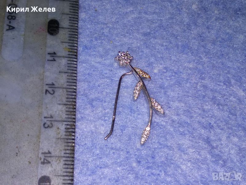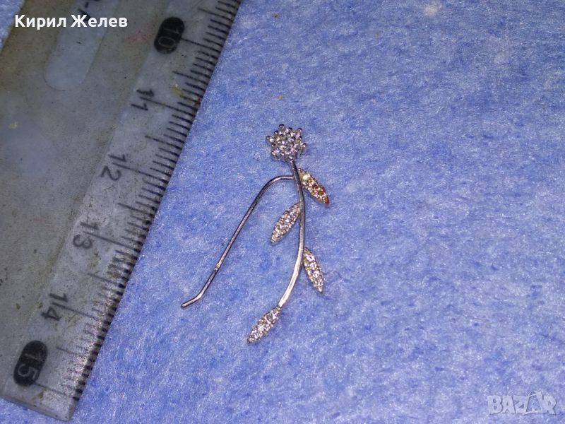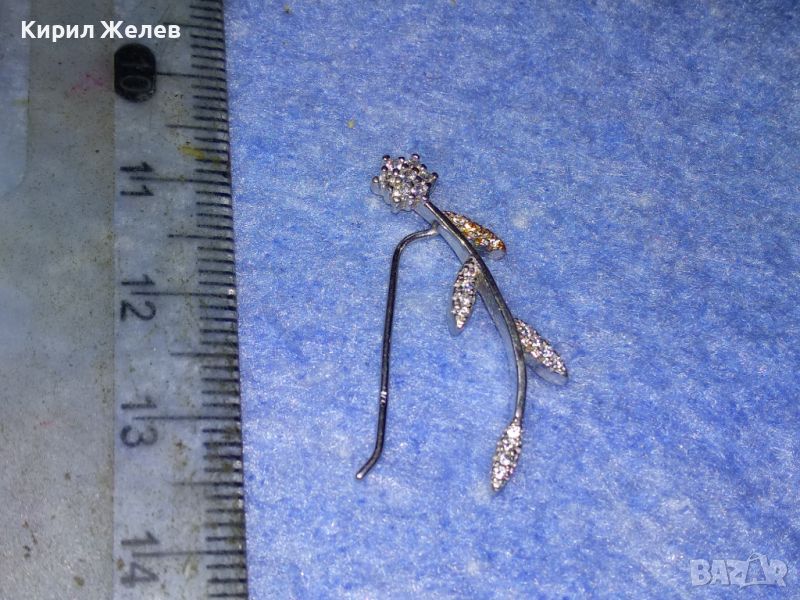 ИЗУМИТЕЛНО КРАСИВА НЕЖНА ФЛОРАЛНА СРЕБЪРНА ОБЕЦА ЦВЕТЕ СРЕБРО 925 с БЯЛА ПОЗЛАТА и ЦИРКОНИ 43344