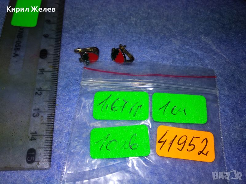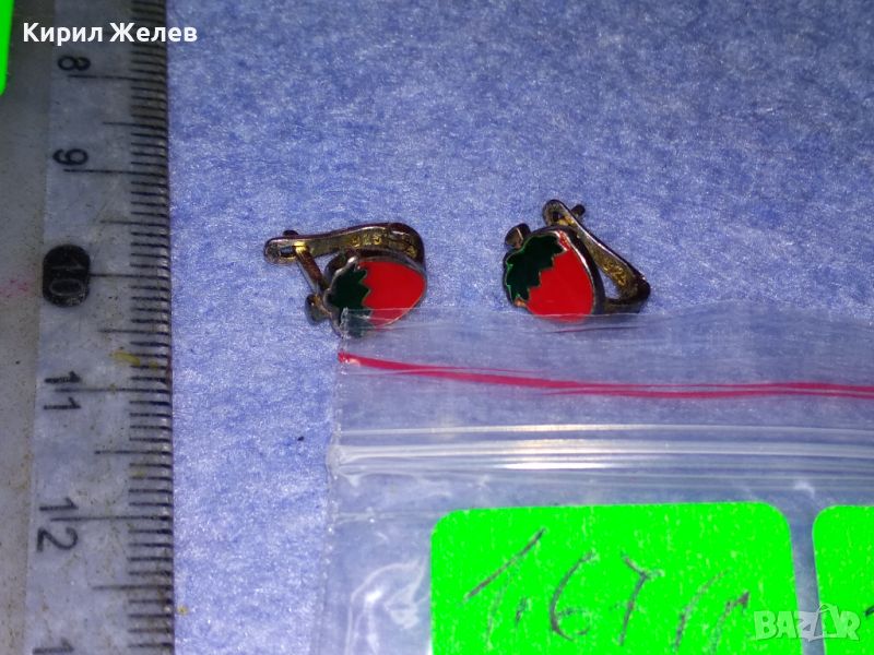 ПРЕКРАСНИ ФИГУРАЛНИ ЕМАЙЛИРАНИ СРЕБЪРНИ ОБЕЦИ ЯГОДКИ СРЕБРО 925 АНГЛИЯ ФИНА БИЖУТЕРСКА РАБОТА 41952