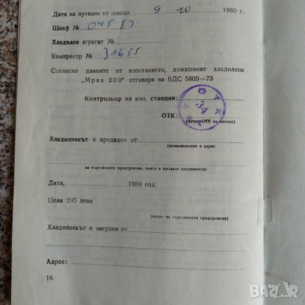 Инструкция за хладилник Мраз 200 от 1980г