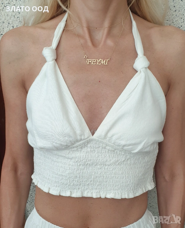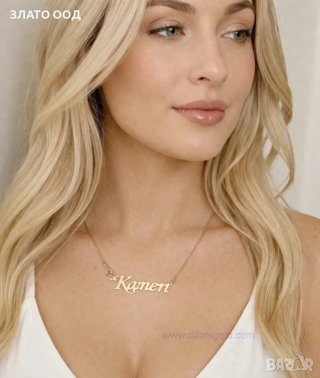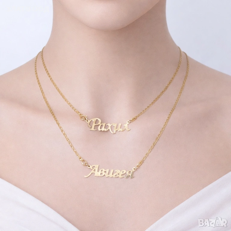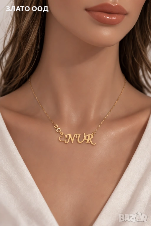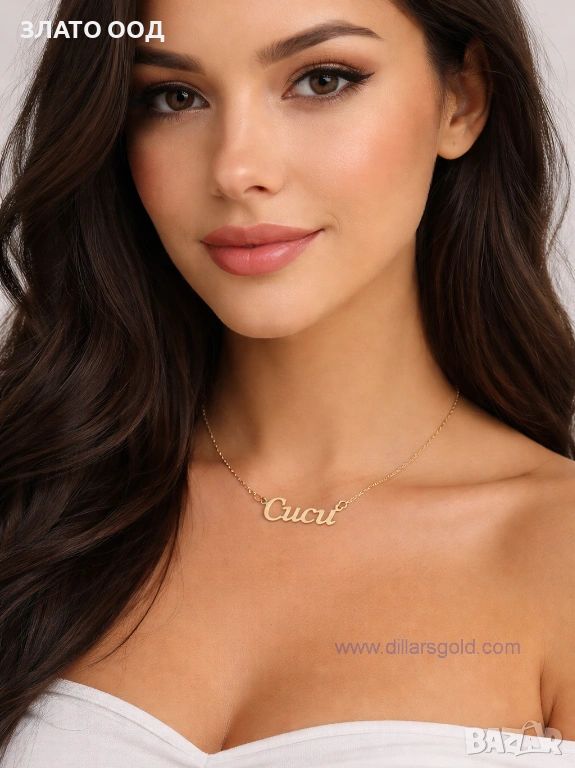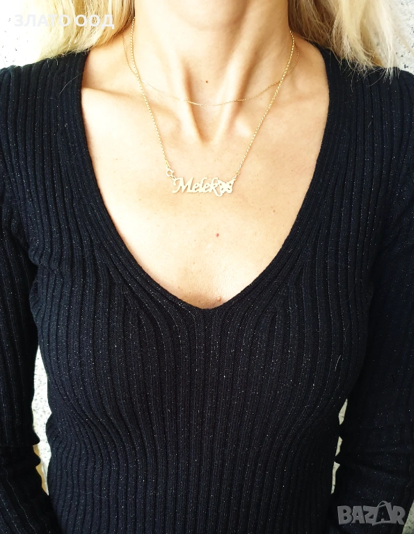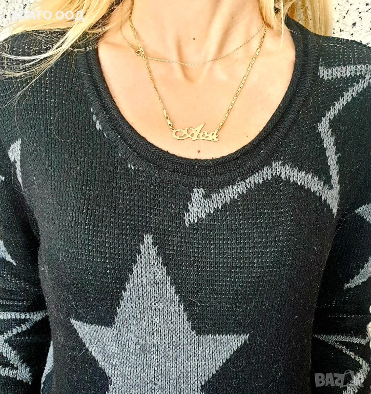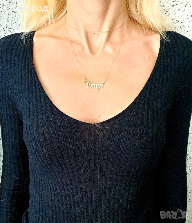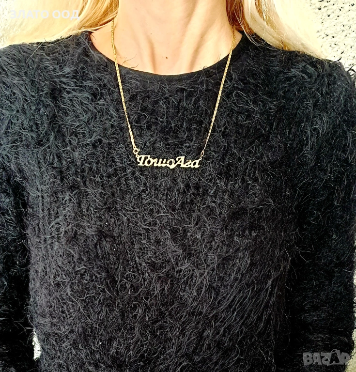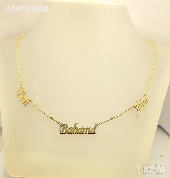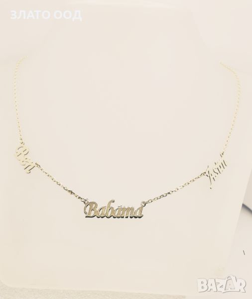 Златно колие надпис, име- 14К → Обява 45606034